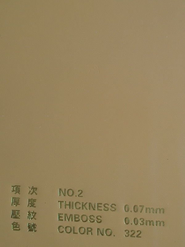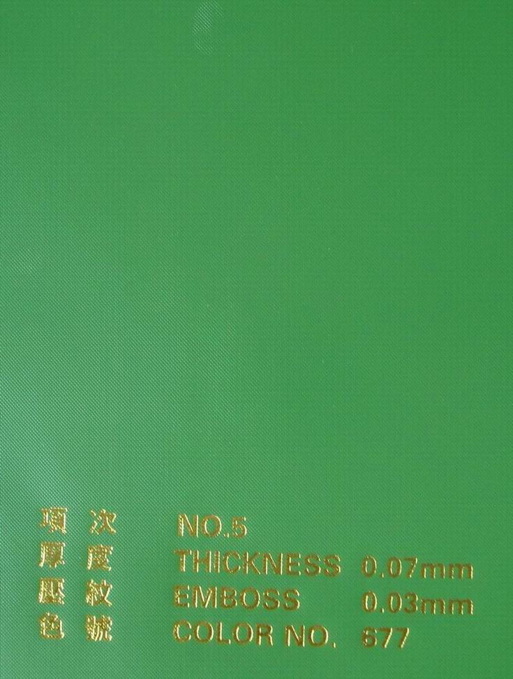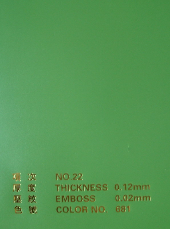 Color:According to customer's requirement Emboss: 0.01, 0.02, 0.03mm Thickness: 0.07-0.21mm Width: 10-700mm